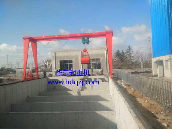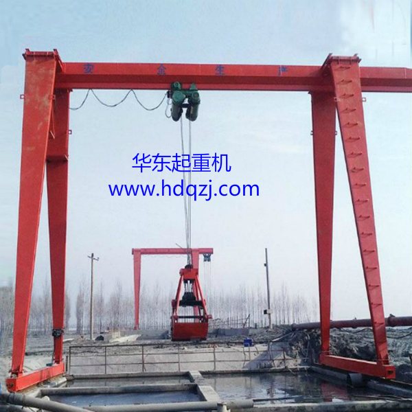 MH型單梁抓斗門式起重機是根據JB/T5663-2008 《電動葫蘆門式起重機》生產制作,與兩臺電動葫蘆(特制鋼架將兩臺電動葫蘆固定一起使用)及抓斗配套使用,是一般用途有軌運行的中小型起重機。