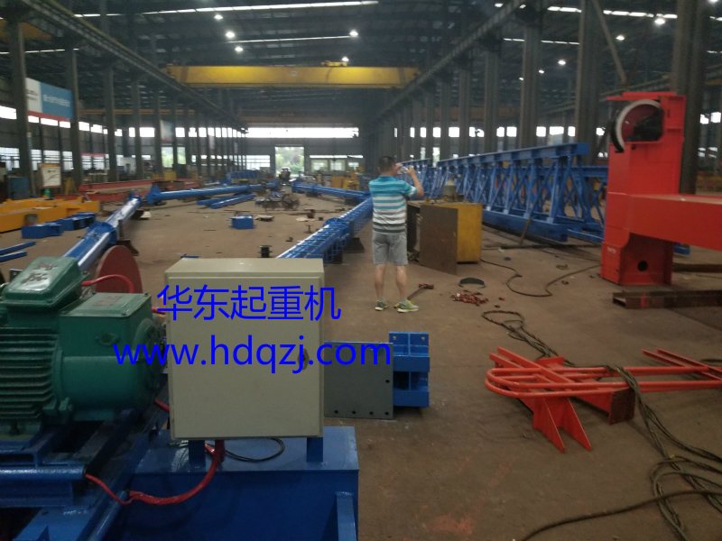 提梁機主要是為橋梁架設工程、路橋建設專門設計的,用于吊運建橋所需要各種物料及預制梁,提梁機既可兩臺配合抬吊預制梁,也可以單臺起重機配雙吊具起吊預制梁,兩臺同時起吊的提梁機各自的起重量80噸,單臺吊運提梁機起重量需要達160噸。本產品起重量大,結構簡單,操作簡單,提梁機由拼裝式主梁、支腿、卷揚機等組成,構件間采用銷軸及高強螺栓連接,易于安裝、拆裝、運輸,適合在施工作業項目地點流動性大的道路橋梁架設單位使用。
