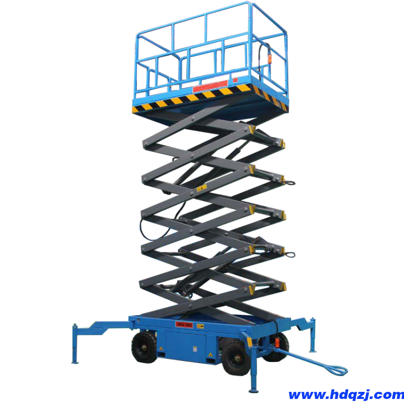 在落差物大的地方可以考慮用這種形式。頭部乍聾油式可使安裝加的高度降低,但如果較大時,移動式升降機油缸會因為提升受力增加,而且提升高度越大,這種增力國濺快,這對油缸的使用是不何用,所以太大時,頭部銷軸式不適用。為了綜合考慮安裝架的高度和油缸在提升過程中受力的問題,可以考慮中間式的安裝方式,安裝位置可以根據計算設置在適當的高度上。