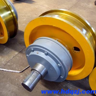 LD輪又稱LD電動單梁行走輪、大車行走輪。每套LD輪含:主動輪2個、從動輪2個、LD軸4根。LD輪采用熱處理輪片,全新軸承45#鋼平面齒圈加工定制而成。