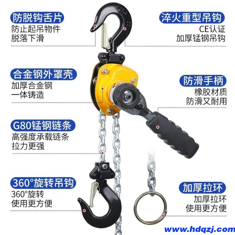 5. 環鏈手扳葫蘆結構x進,外形美觀;維修簡便,經久耐用;手扳力小,勞動效率高;體積小,重量輕,攜帶方便。